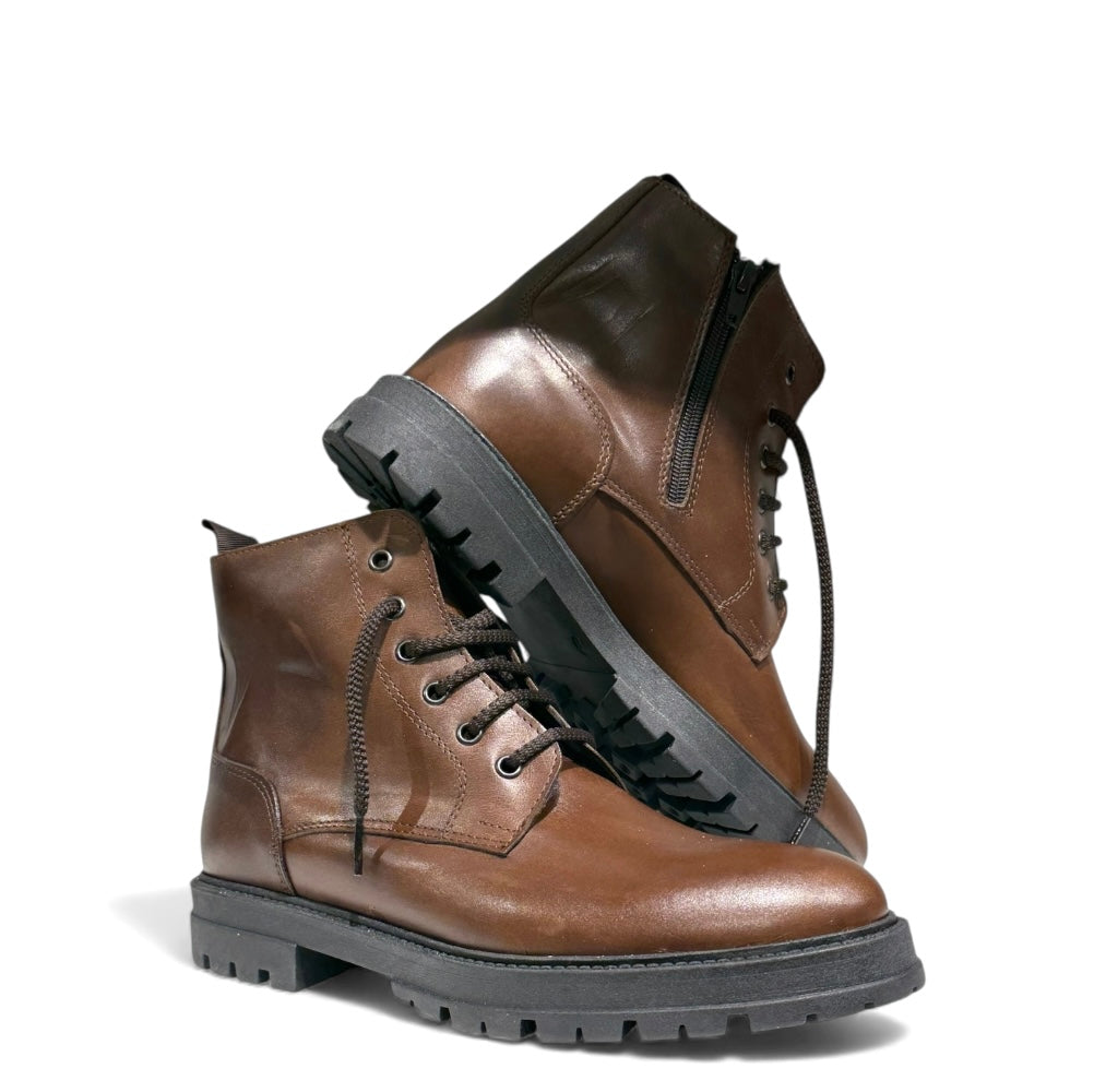 Anfibio in pelle marrone con fondo gomma alta molto leggera e cerniera interna.