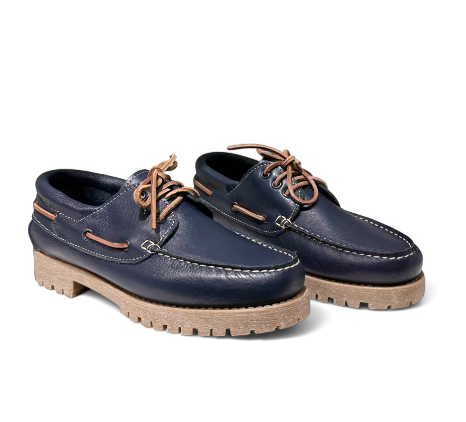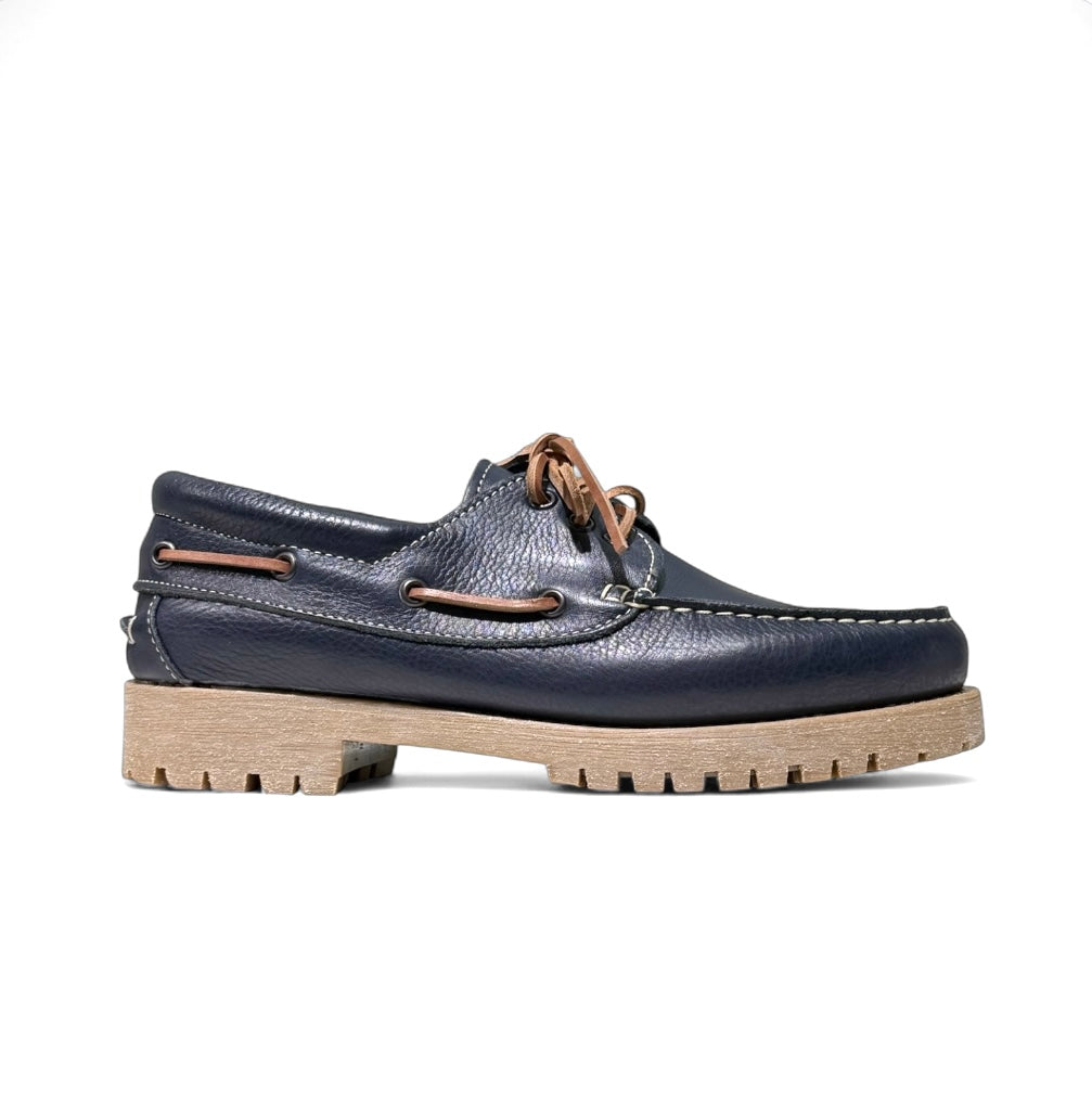 Modello barca in pelle blu martellata e fondo roccia
