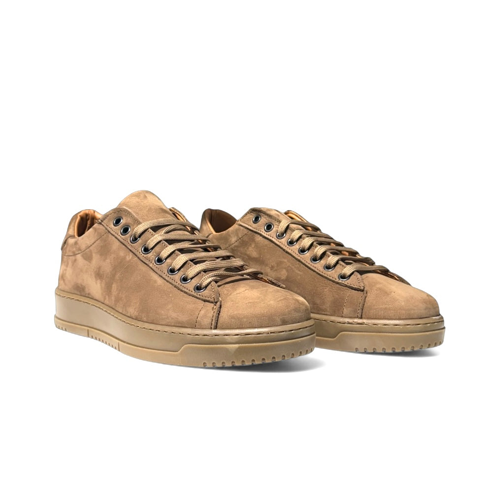 Sneakers in nabuk beige e fondo Ambra alto con sottopiede anatomico estraibile.
