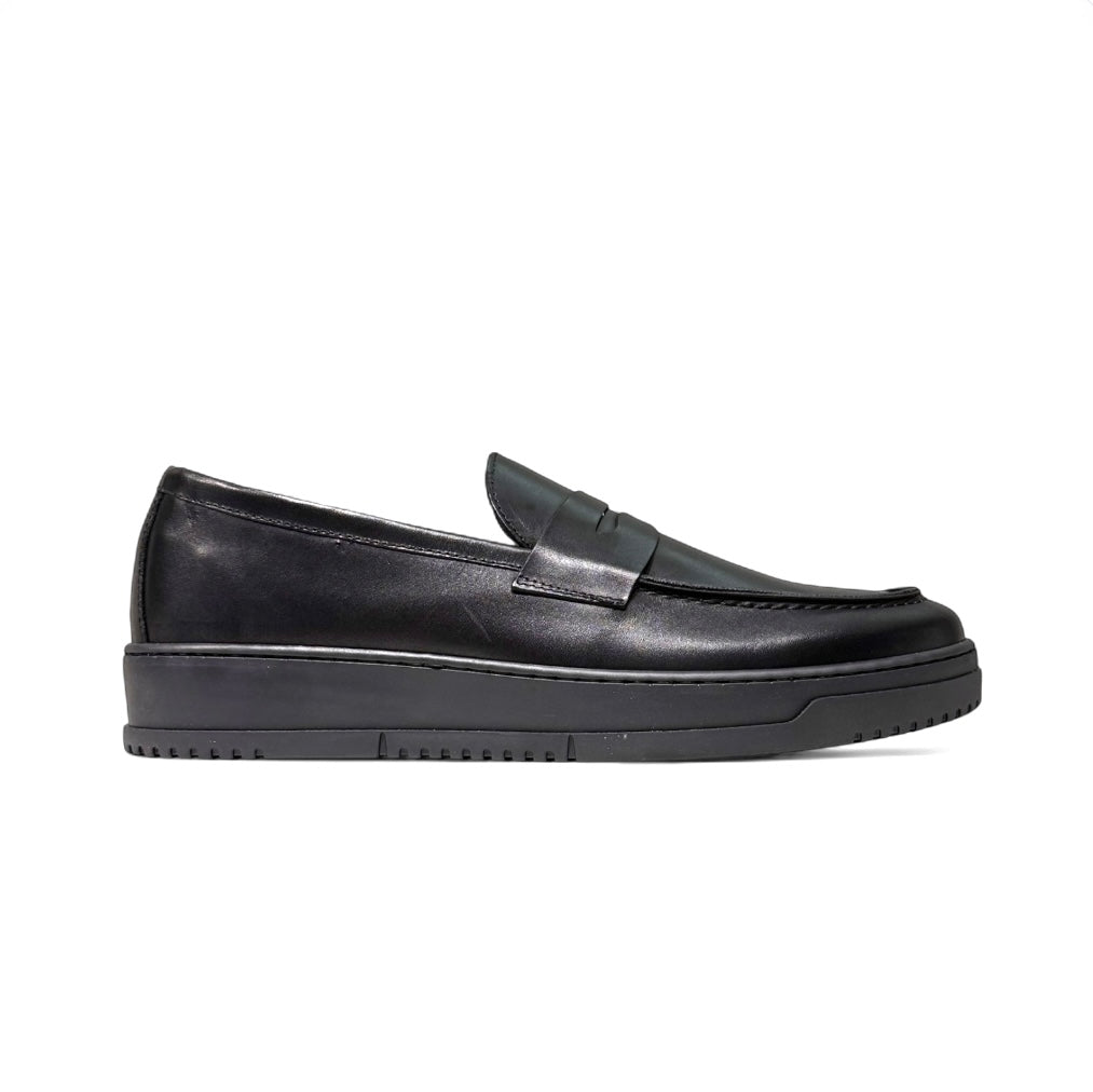 Mocassino in vitello nero e fondo alto nero con sottopiede anatomico estraibile.