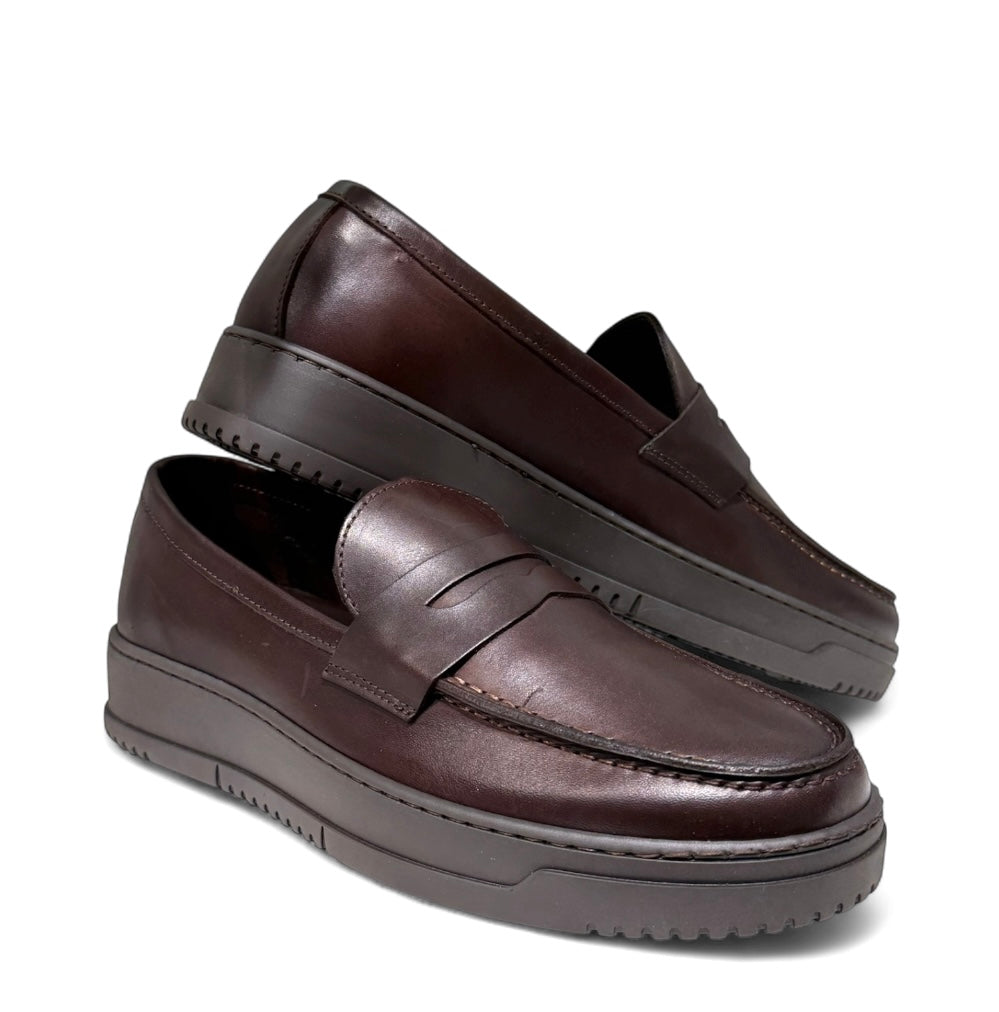 Mocassino in pelle t.moro con fondo alto marrone e sottopiede anatomico estraibile .