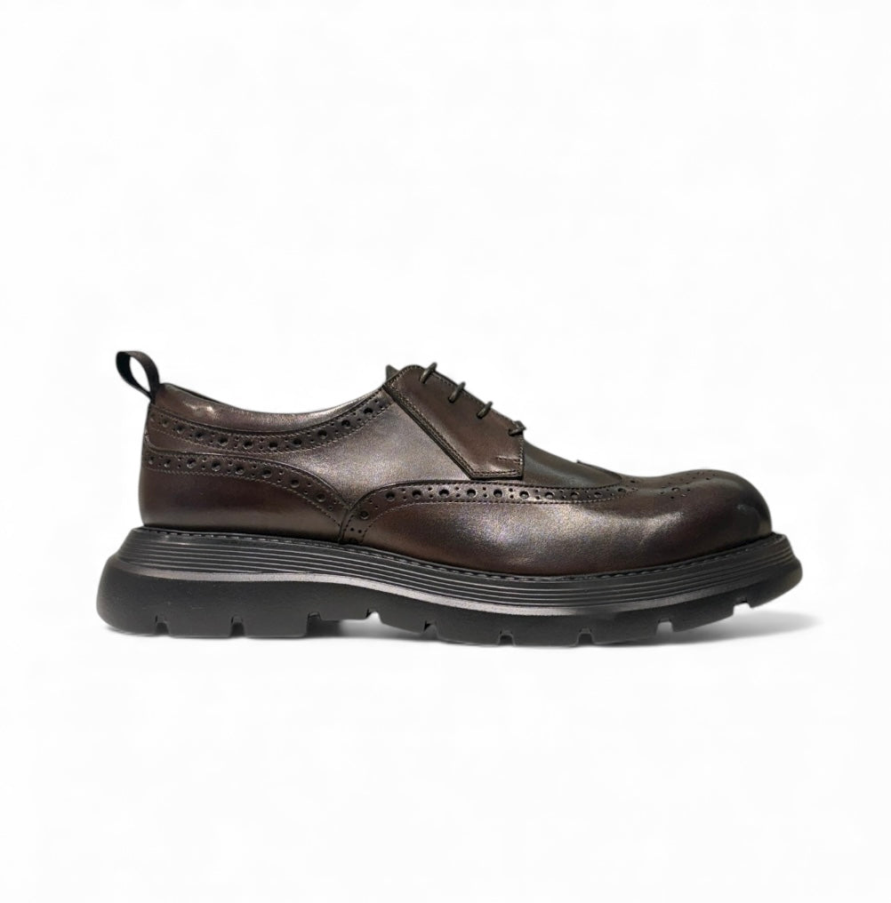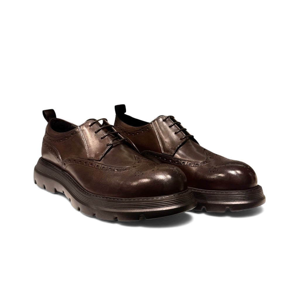 Derby in pelle marrone con fondo gomma ultra leggero.