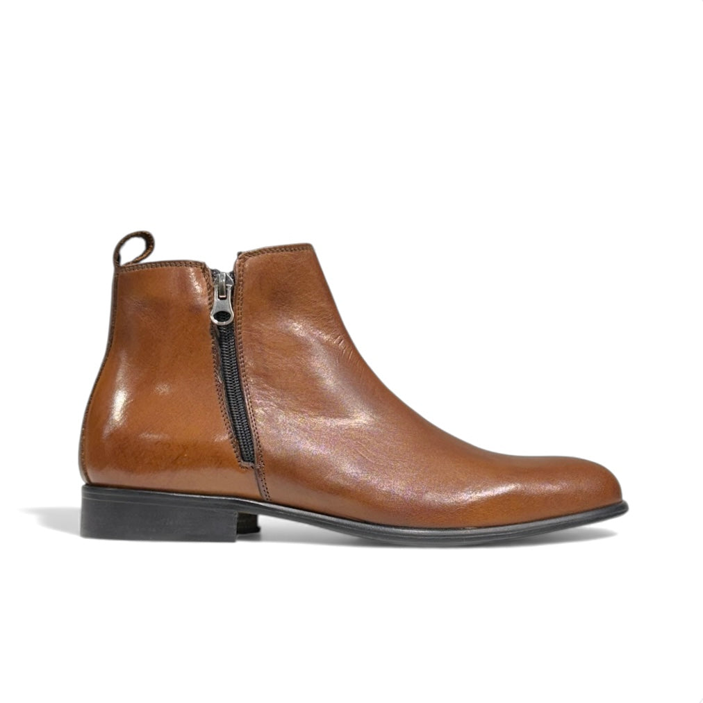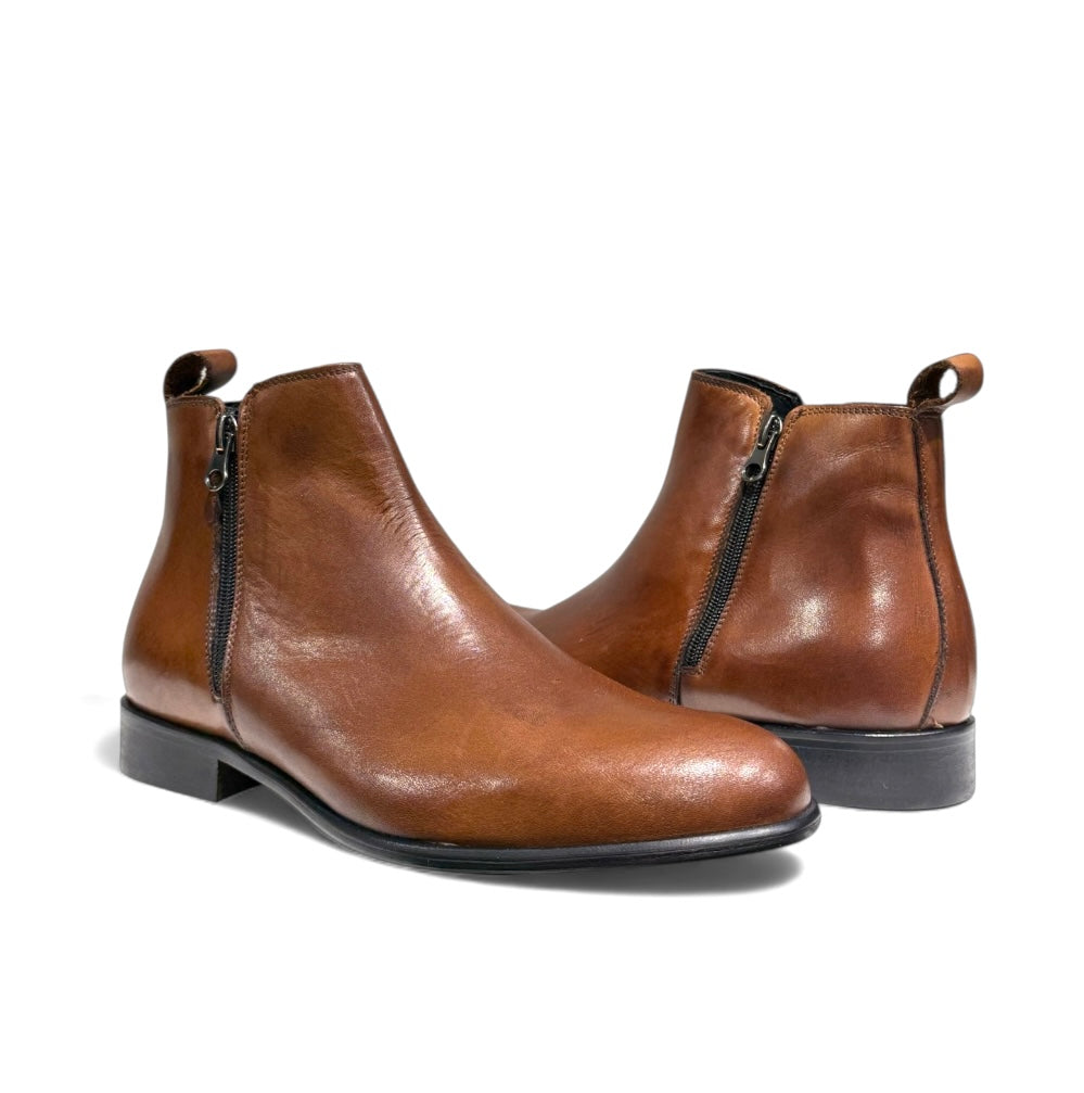 Stivale in pelle marrone con doppia cerniera interna e esterna con fondo cuoio con antiscivolo