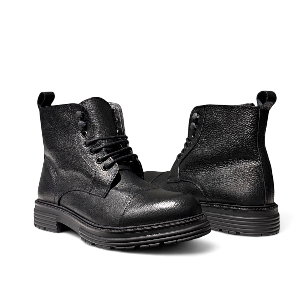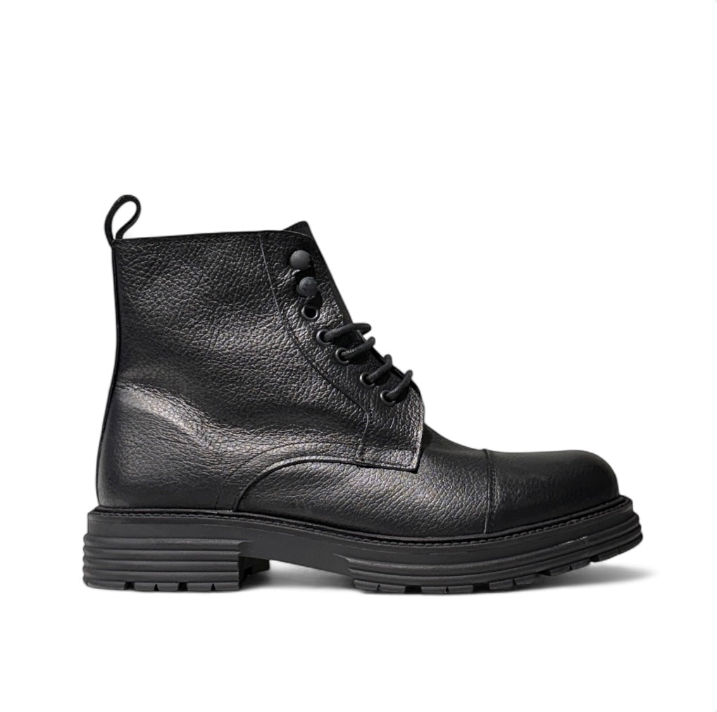 Anfibi in pelle nera martellata con cucitura in punta e cerniera interna ,con fondo roccia ultra leggero.