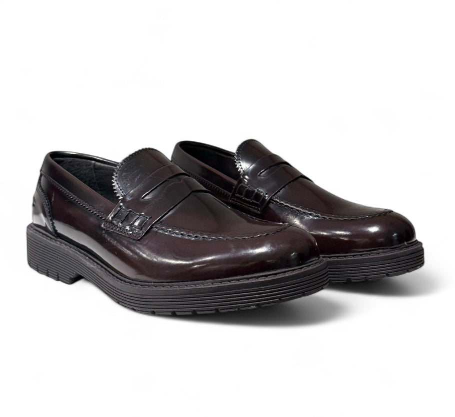 Mocassino con bendina in abbrasivato marrone con fondo gomma leggera.