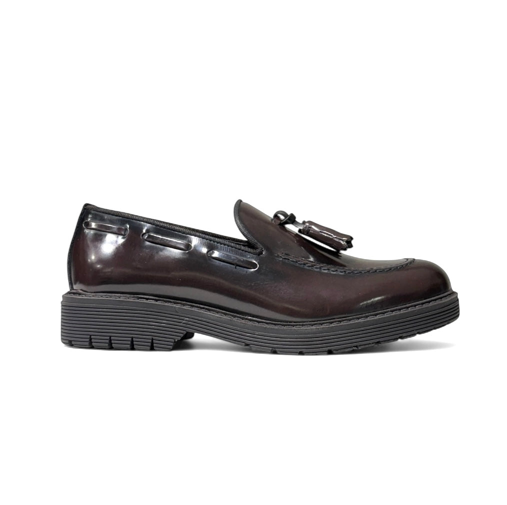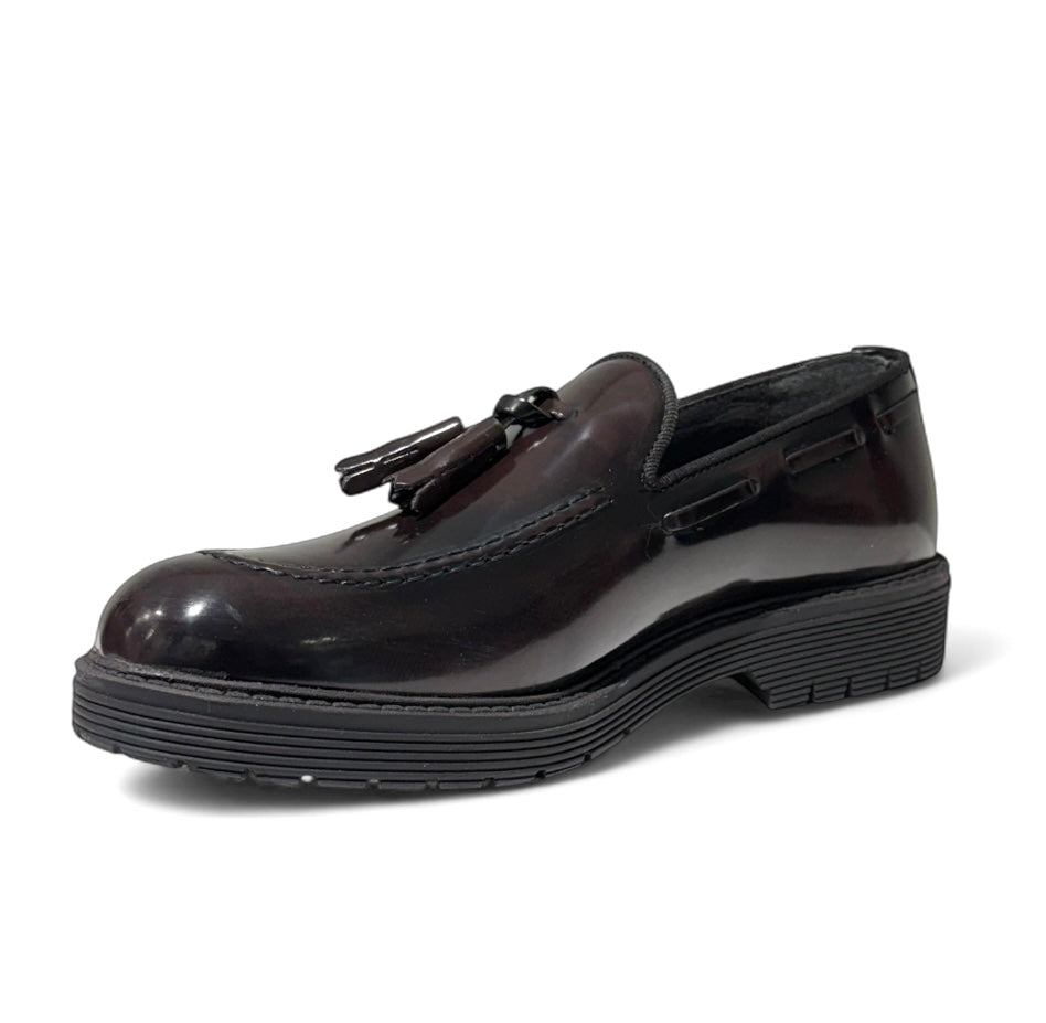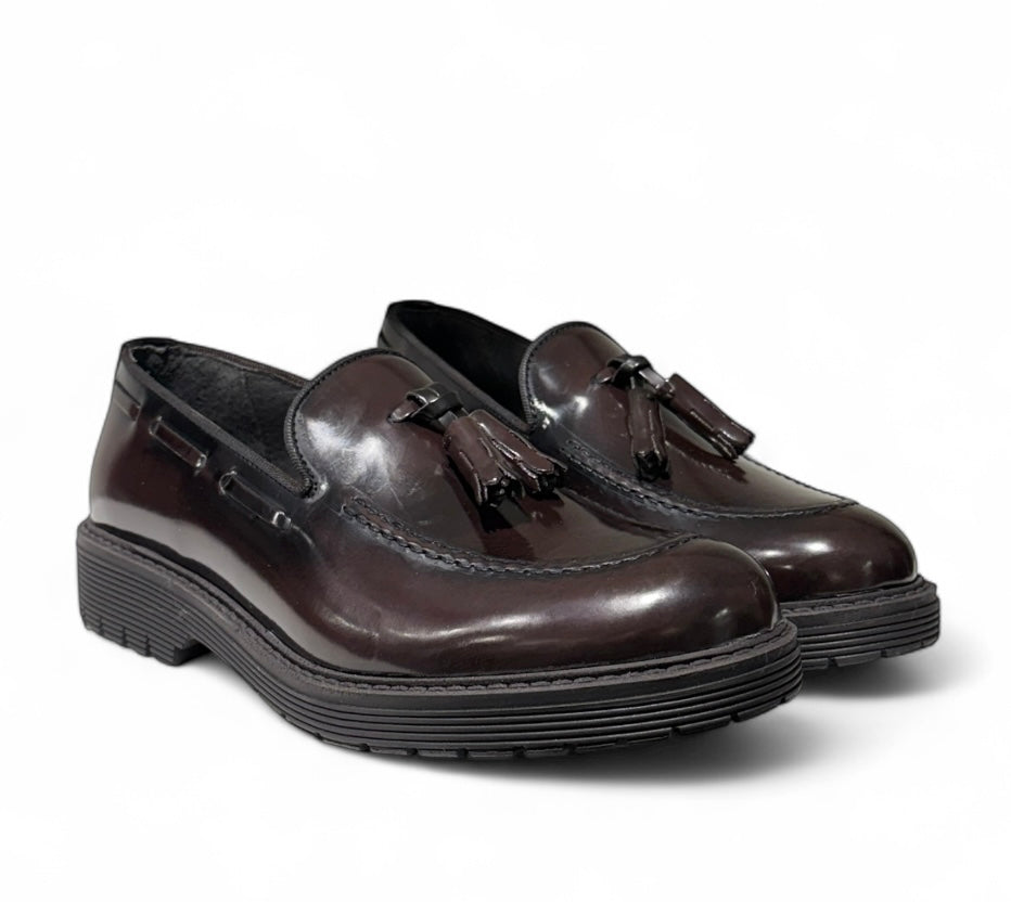 Mocassino con nappine in abbrasivato marrone e fondo gomma leggera.
