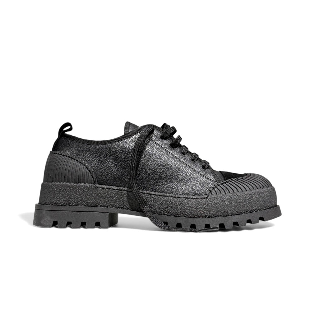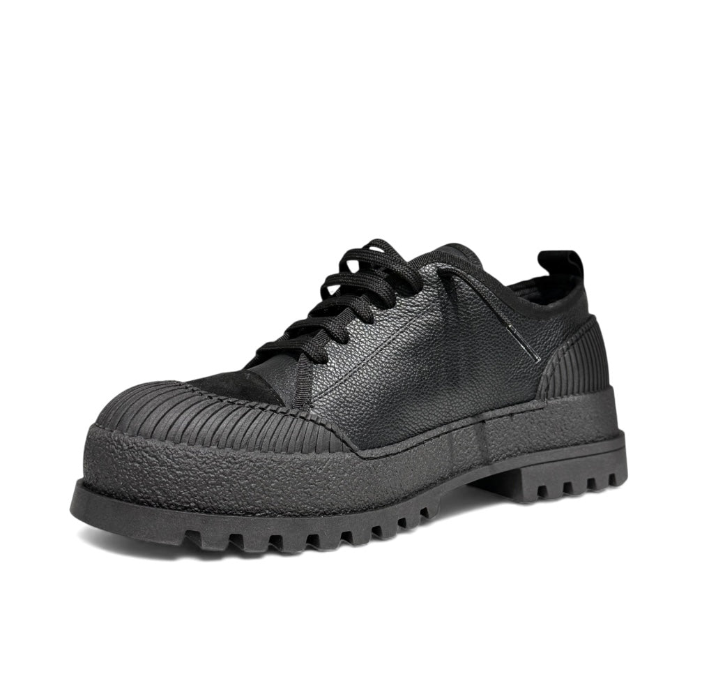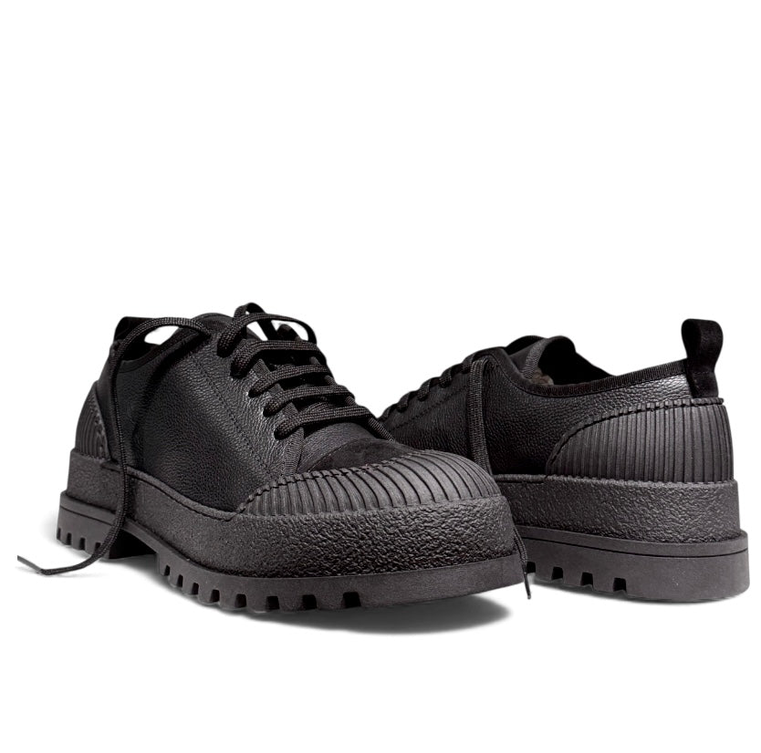 Sneakers bassa in pelle martellata con punta in camoscio nero e fondo alto creppato..