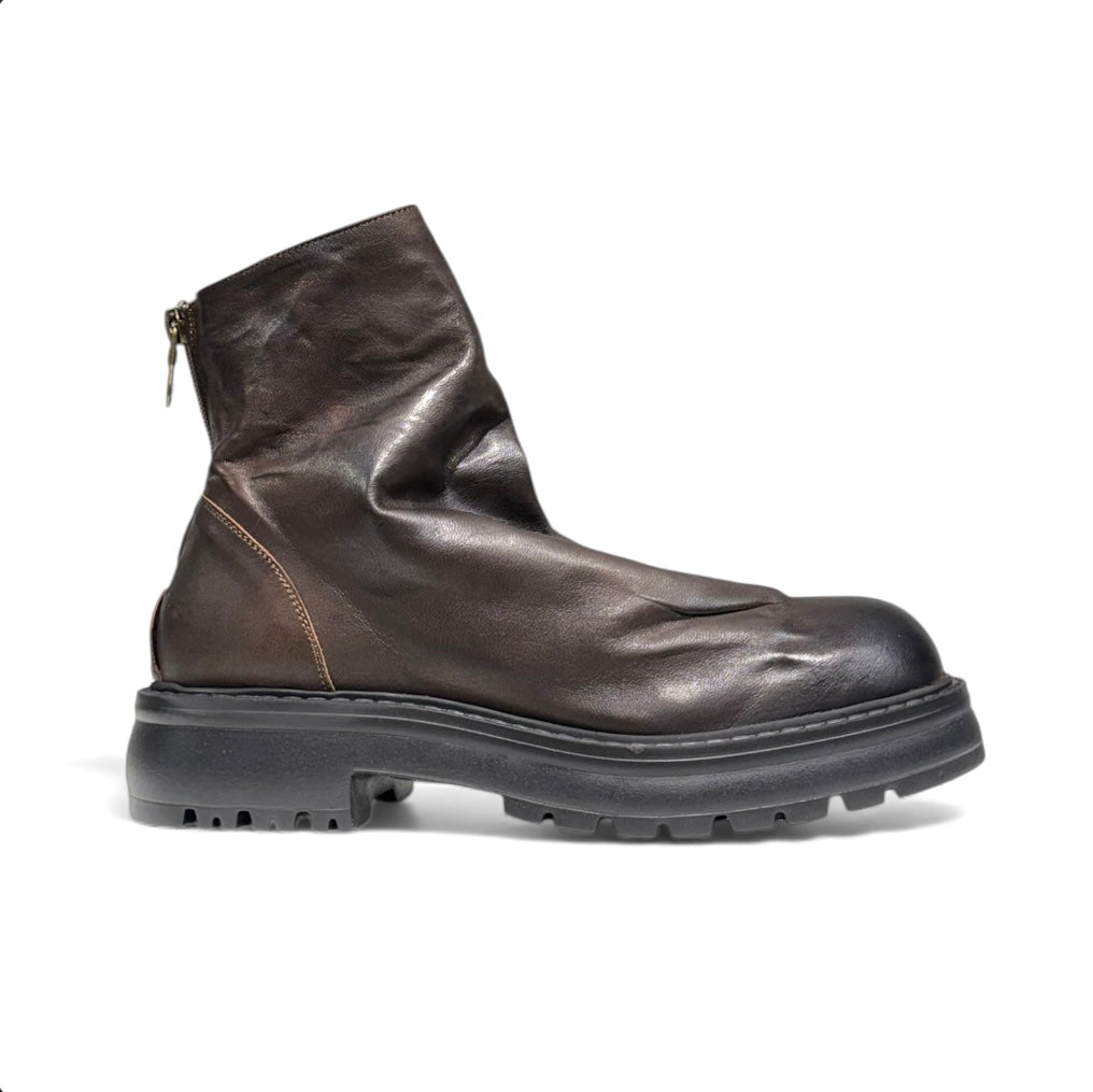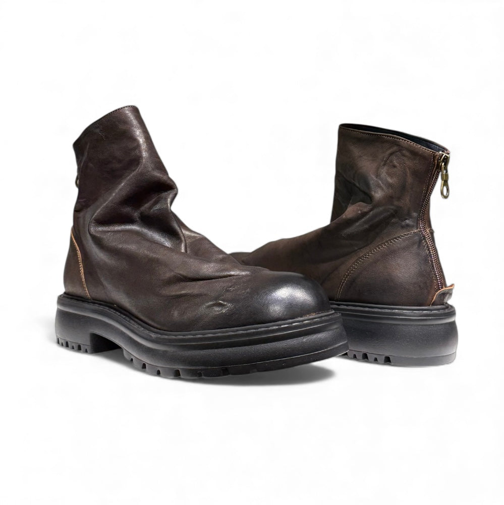 Stivale in pelle ingrassata stropicciata con fondo ultra light e cerniera nel retro ..