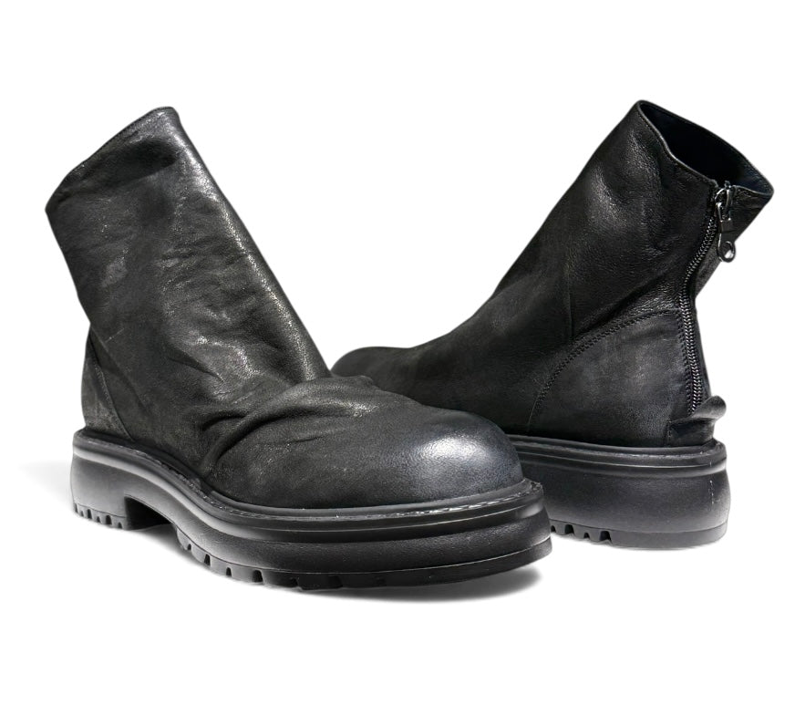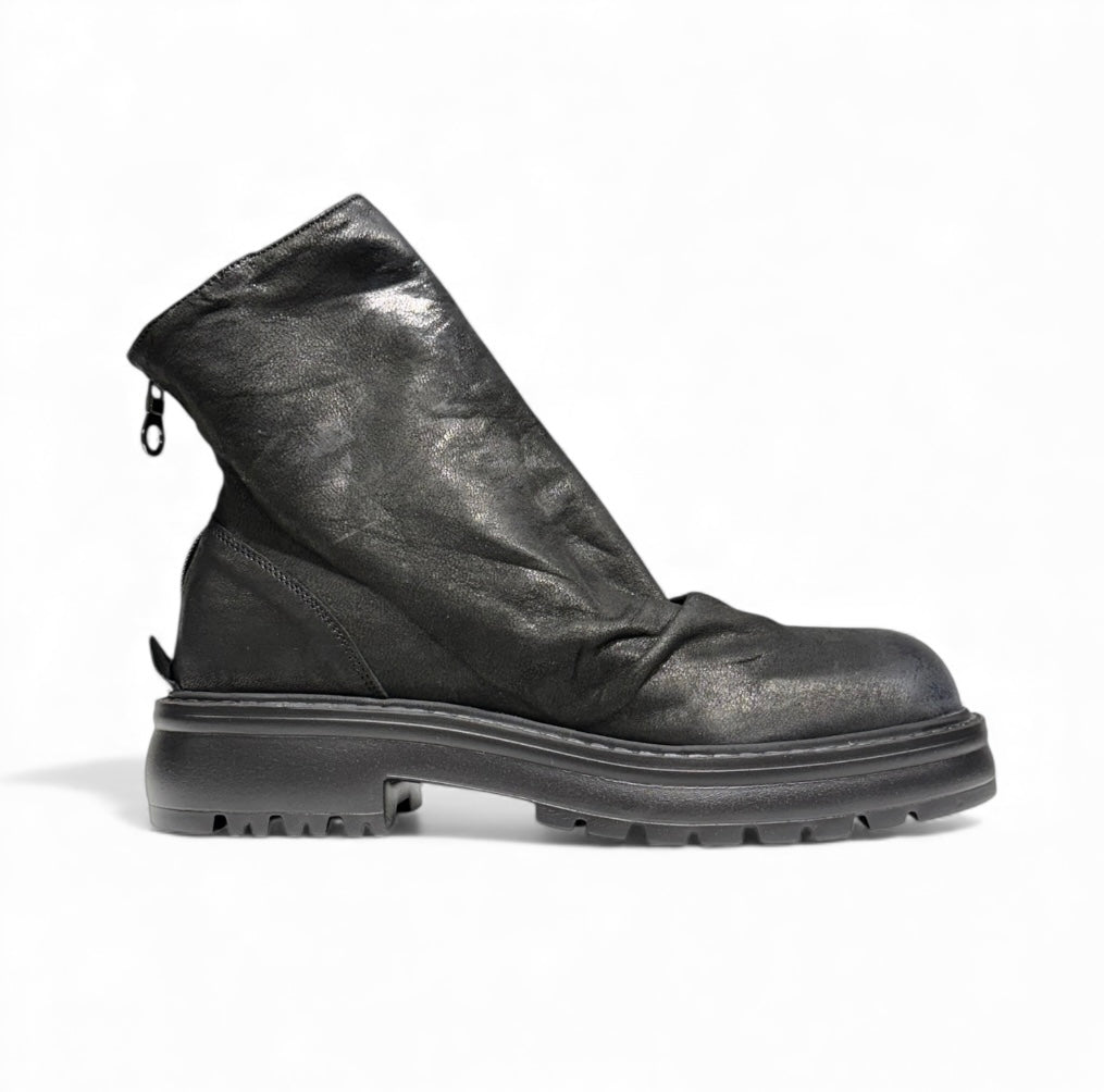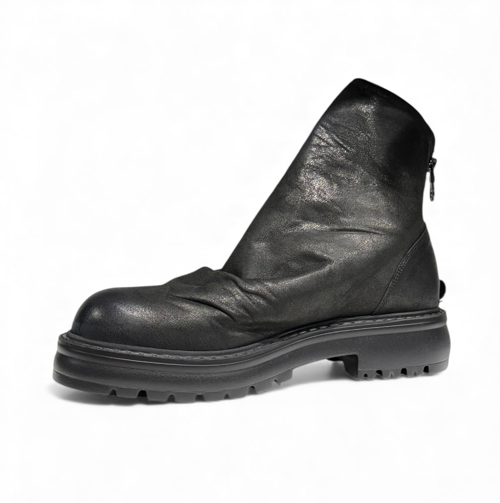 Stivale in pelle nera stropicciata e fondo gomma ultra light e cerniera nel retro ..