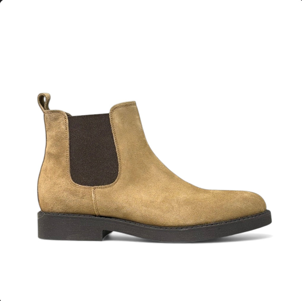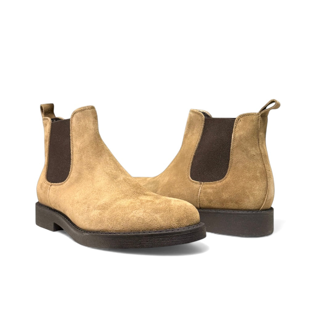 Beatles in camoscio tortora con fondo gomma leggera .
