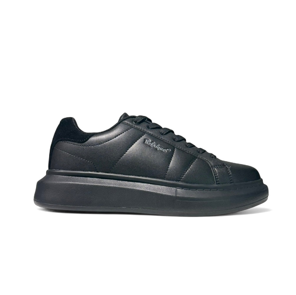 Sneakers REFRIGUE in pelle nera e fondo nero.